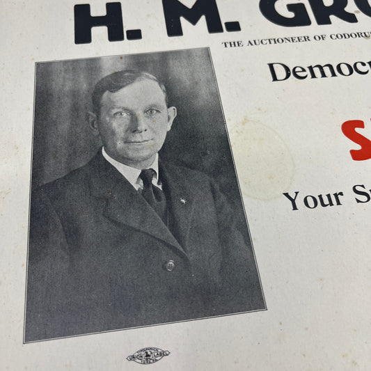 1927 Political Poster H.M. Grote For Sheriff Codorus Twp York County PA FL5